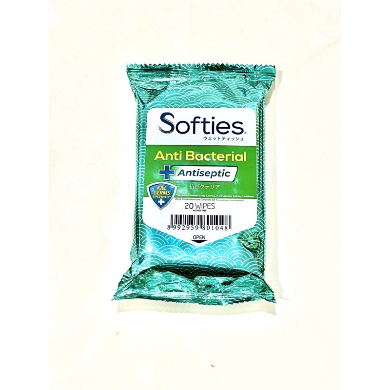 tisu basah softies wipes antiseptic 20s dan natural alovera 20s